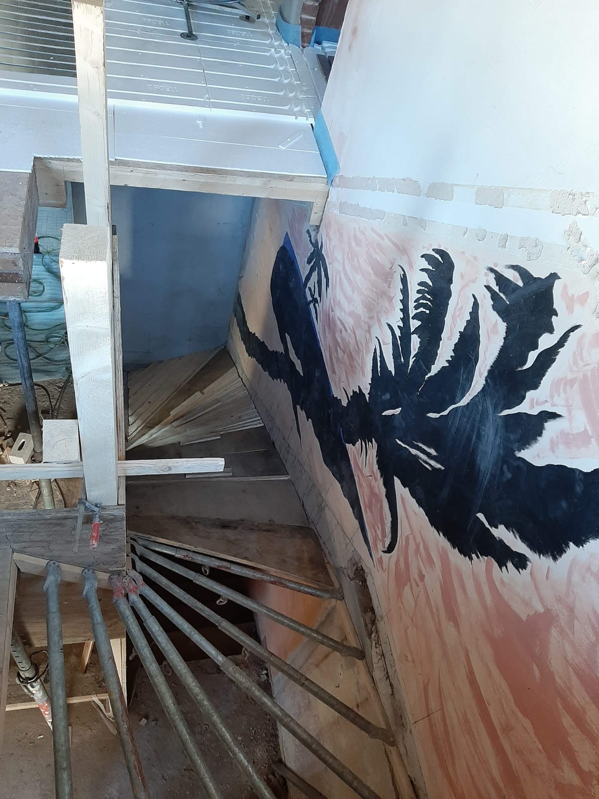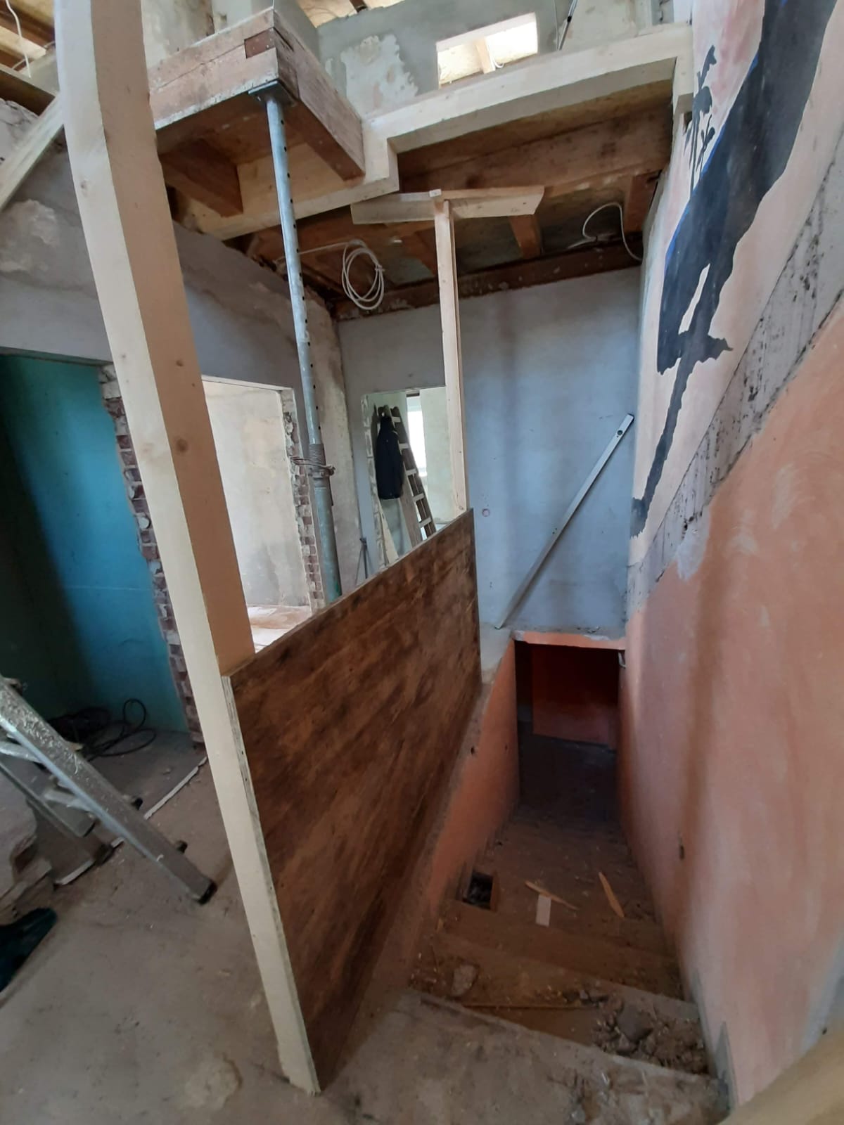 Das bedeutet es wurde ein Fundament eingearbeitet, eine Neue Außenwand gemauert, und im Anschluss die Hälfte hinter der neu erstellten Außenwand Abgerissen.