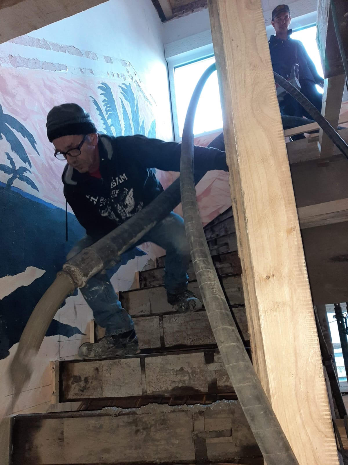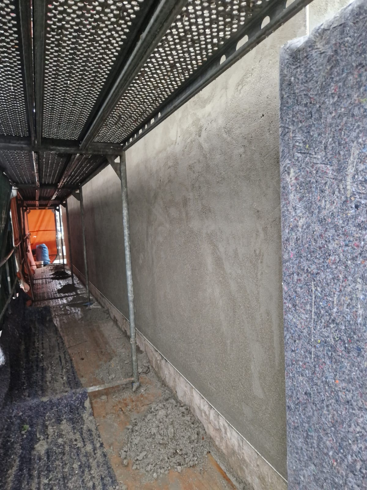 Instandsetzungsmörtel: Reprofilierung mit geeignetem Mörtel, oft in mehreren Lagen, besonders bei Überkopfarbeiten.