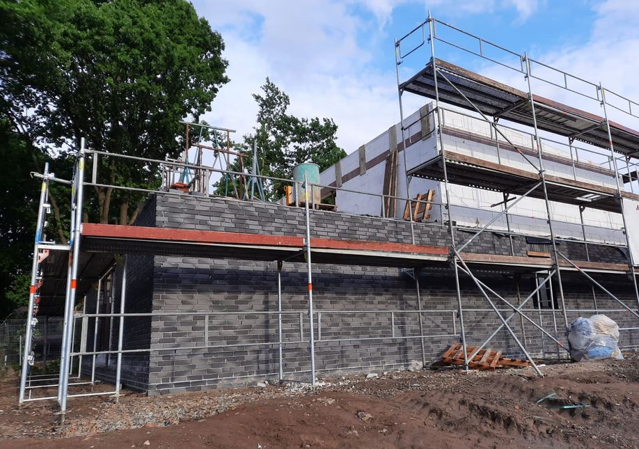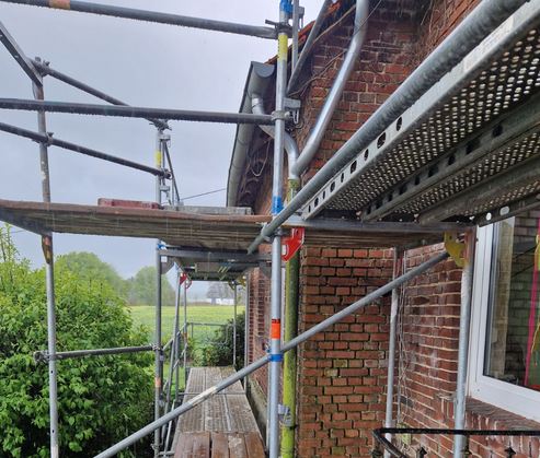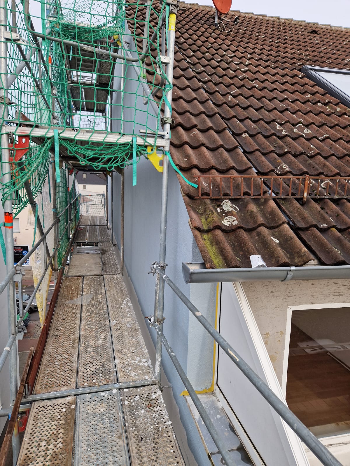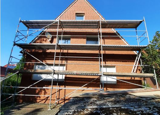 Aufbau und nach erfolgter Freimeldung Abbau eines Arbeits- Schutzgerüstes gemäß Bauberufsgenossenschaften nach DIN 4420 mit Lastklasse 4, mit der Breitenklasse W09, Bestehend aus Gerüstlagen von jeweils 3m, erhältlich mit Netzen,