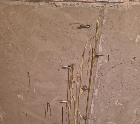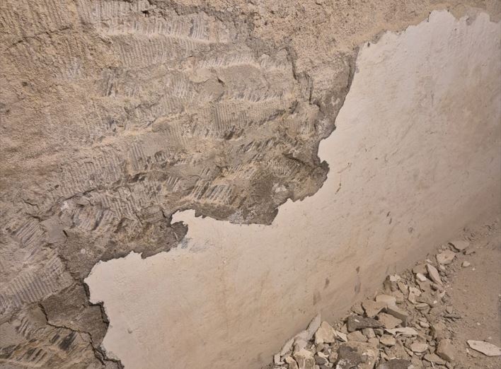 Prüfen auf Hohlstellen: Abklopfen der Fläche.