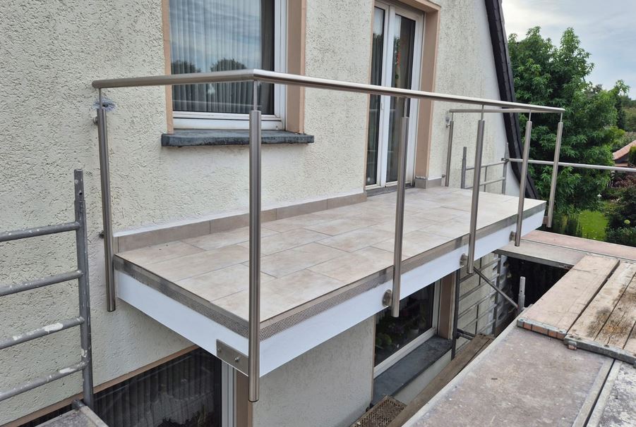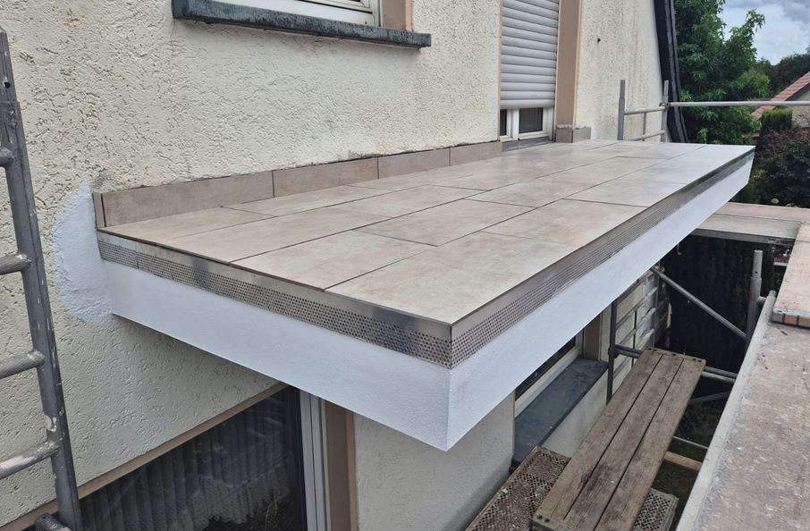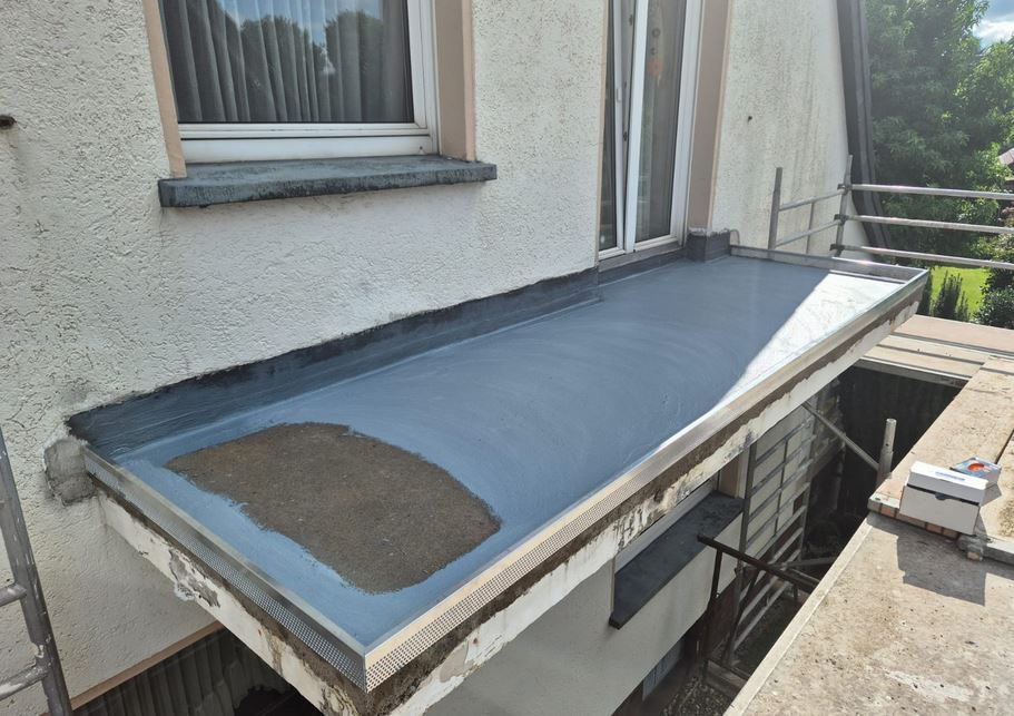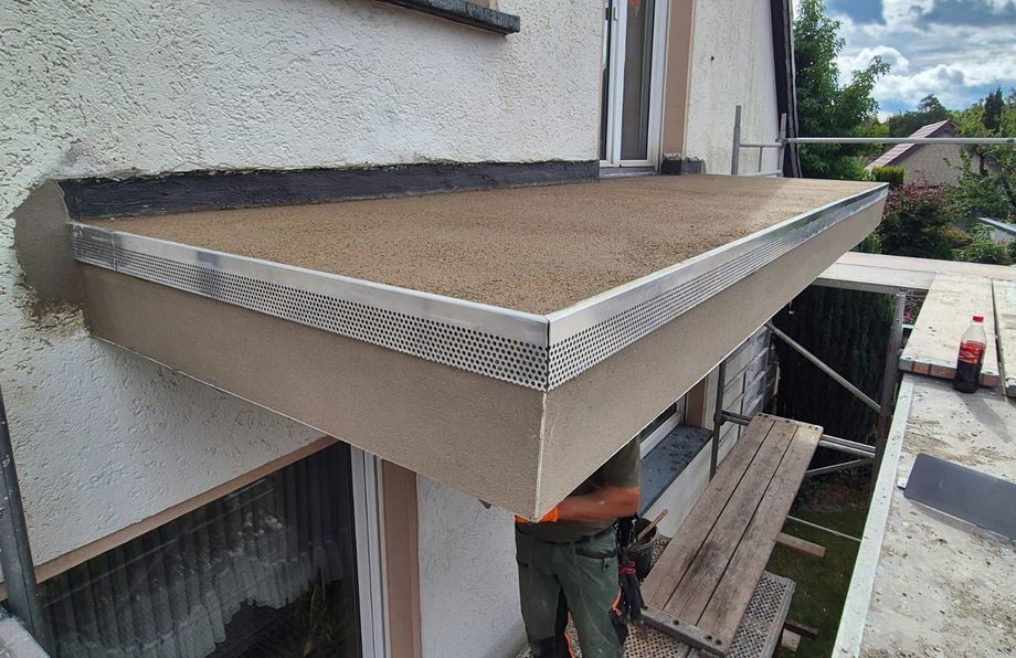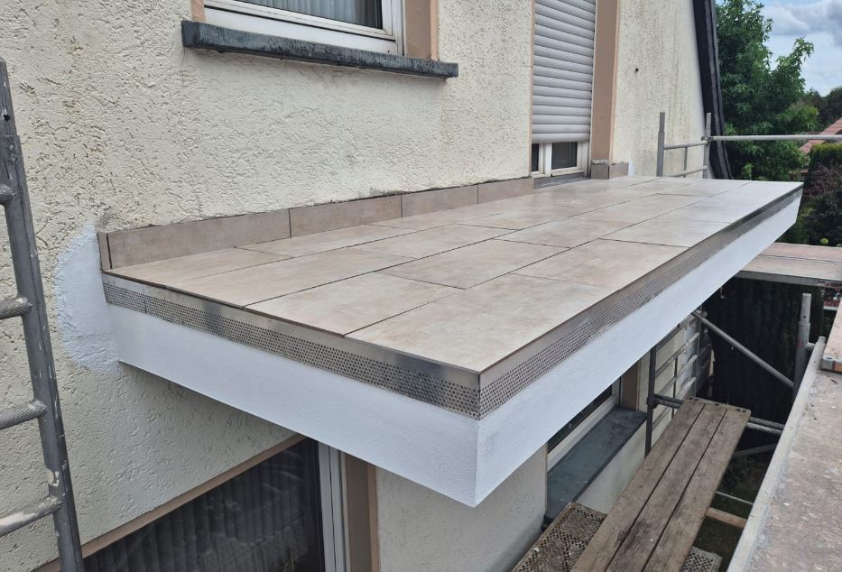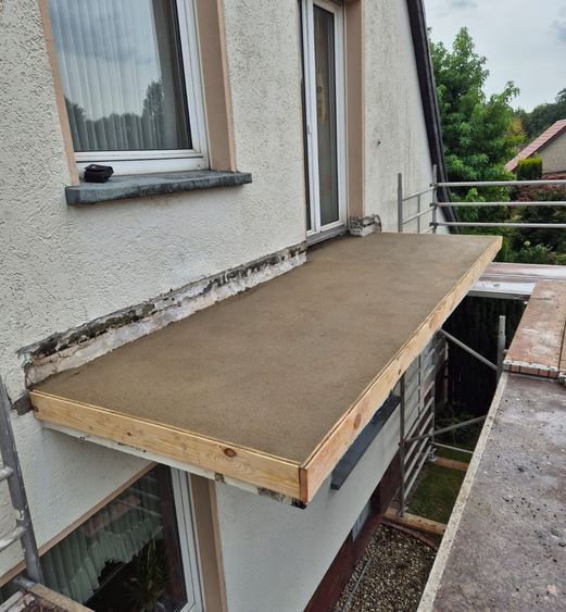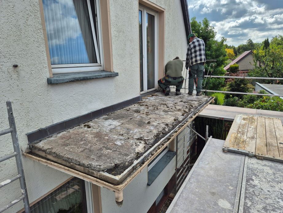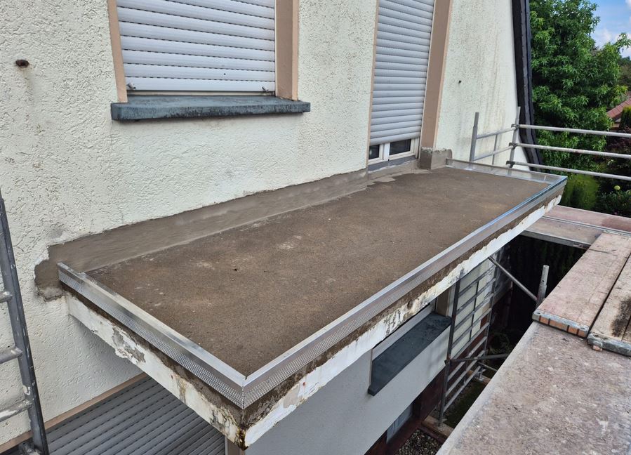 Instandsetzung eines Balkons, bei dem zunächst der alte Belag entfernt, der Untergrund gereinigt und Schäden behoben werden, gefolgt von einer neuen Abdichtung (oft mit Flüssigkunststoff) und dem Aufbringen eines neuen, strapazierfähigen Belags, wobei je nach Situation auch Geländer, Abdichtungen an Anschlüssen und der Estrich erneuert werden, um Feuchtigkeitsschäden vorzubeugen und die Bausubstanz zu schützen.
