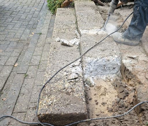 Ausschneiden und Abstemmen: Entfernen von losem, beschädigtem Beton bis auf tragfähigen Beton.